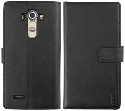 Mumbi Borsa in vera pelle Bookstyle compatibile con LG G4, nero