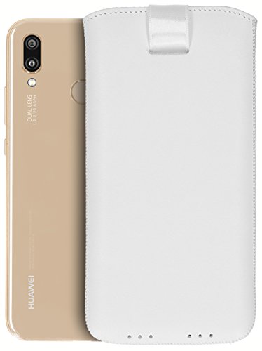 Mumbi Borsa in vera pelle compatibile con Huawei P20 Lite, (Linguetta con funzione di retrazione, supporto estraibile), bianco