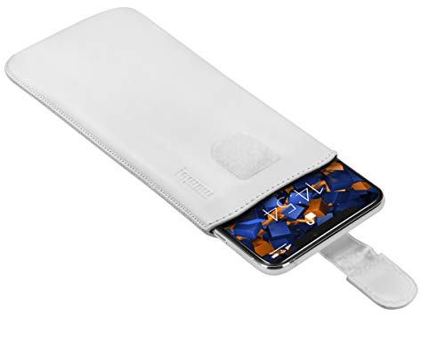 Mumbi Borsa in vera pelle compatibile con iPhone XS Max, (Linguetta con funzione di retrazione, supporto estraibile), bianco