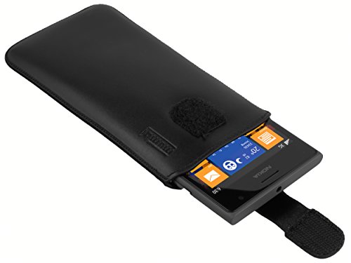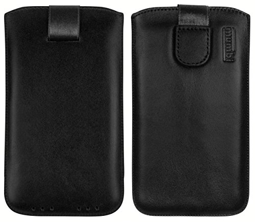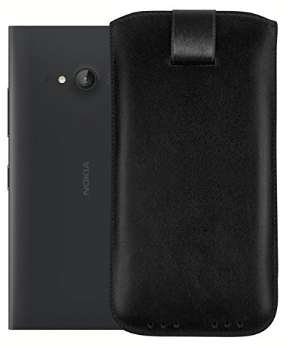 Mumbi Borsa in vera pelle compatibile con Nokia Lumia 730/735, (Linguetta con funzione di retrazione, supporto estraibile), nero