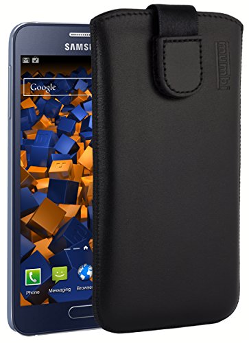 Mumbi Borsa in vera pelle compatibile con Samsung Galaxy A3 (2015), (Linguetta con funzione di retrazione, supporto estraibile), nero