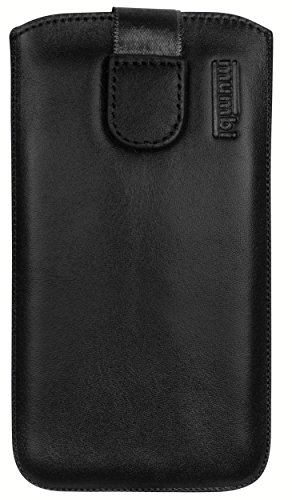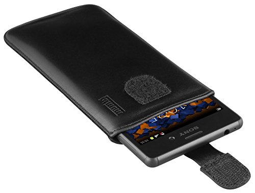 Mumbi Borsa in vera pelle compatibile con Sony Xperia M4 Aqua, (Linguetta con funzione di retrazione, supporto estraibile), nero