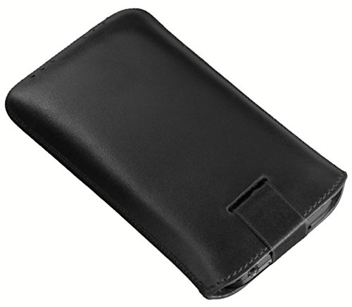 Custodia in vera pelle per Galaxy S4 mini - grazie alla linguetta cucita che si ritrae durante l'inserimento è possibile estrarre il vostro S4 mini facilmente dalla custodia.