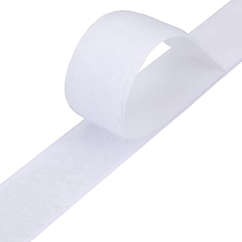 Mumbi Velcro autoadesivo in velcro composto da gancio e tessuto felpato, chiusura in velcro extra forte, 38 mm x 25 m, bianco
