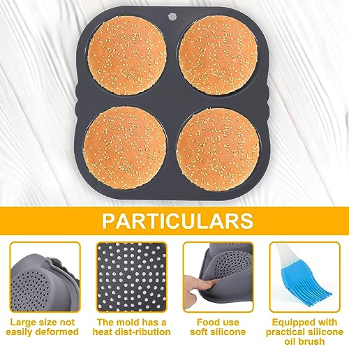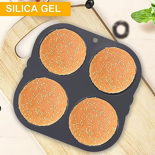 【Prodotti da Forno Squisiti Multifunzionali】: Stampi per paninihamburger in silicone per hamburger con 4 griglie, include anche 1 pennello per olio in silicone, che può soddisfare le vostre esigenze di cottura del pane. Questi stampi da forno possono essere utilizzati non solo per
