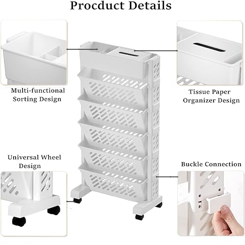 Mumusuki Carrello Portaoggetti, Carrello Portautensili Estraibile Carrello Portaoggetti Scaffale su Ruote Scaffale Mobile Scaffale Organizzatore per Ufficio Cucina Camera da Letto Bagno (5 Strati)