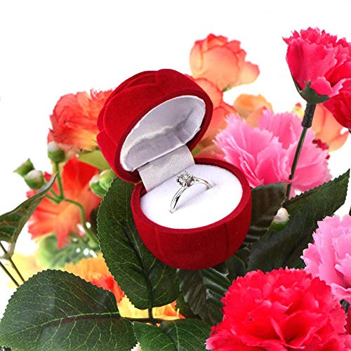 Mumusuki Regalo di San Valentino Scatola con Anello a Forma di Rosa Rossa Orecchino per Gioielli Proposta Romantica Anello con Custodia con Un Ramo Rosa