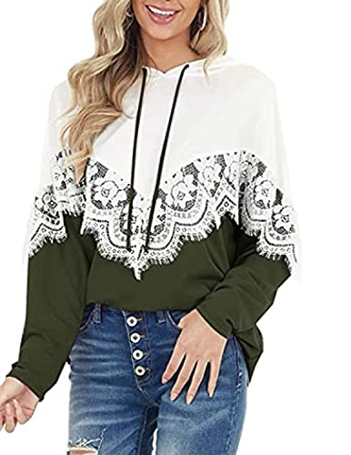MUMZUGI Felpa con Cappuccio Donna Manica Lunga Sweatshirt Maglietta Hoodie Casual Tops Pullover Elegante Verde M