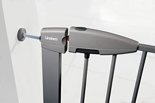 Munchkin Lindam Ethos Cancelletto con Chiusura di Sicurezza per Bambini, Barriera per Scale e Vani Porta, Fissaggio a Pressione Senza Viti, Larghezza da 73 a 79 cm, Colore: Grigio