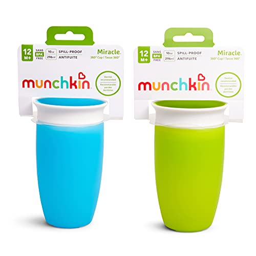 Munchkin Miracle 360 Tazze di Transizione, Set di Tazze Antigoccia per Bambini a Partire da 12 Mesi, Senza PBA, Lavabili in Lavastoviglie - Confezione da 2 x 296 ml, Blu/Verde