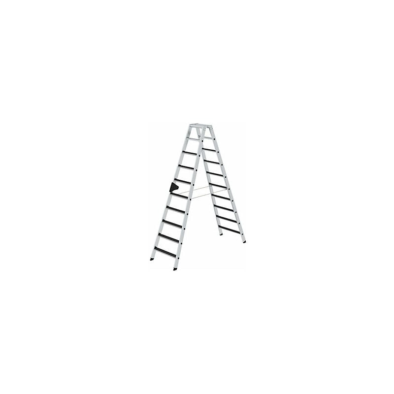Scala a libro CLIP-STEP, con salita su due lati, antiscivolo R13, 2 x 10 gradini. Fornitura = montato. Tipo di prodotto = scale a libro a gradini, salita su due lati. Altezza di lavoro = 4000 mm. Salita = su due lati. Versione da salita = gradini. N. gradini, piattaforma inclusa = 2x10 pz. Materiale telaio = alluminio. Materiale gradini = alluminio. Profondità gradini = 80 mm. Peso = 17.3 kg. Colore telaio = alluminio. Caratteristiche = pieghevole. Portata = 150 kg. Caratteristiche scala = sicurezza antidivaricamento grazie a cinghie di fissaggio ad alta resistenza. Altezza verticale = 2340 mm. Larghezza esterna in basso = 640 mm. Rivestimento clip-step con piccoli inserti di corindone certificati. Con rivestimento antiscivolo clip-step® . Adattamento flessibile alle superfici grazie a nivello® . Impugnatura antiscivolo ergonomica grazie a ergo-pad® . Accoppiamento gradino-montante durevole e resistente. Il rivestimento clip-step® viene applicato sul gradino standard più alto.