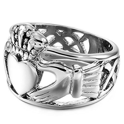 MunkiMix Acciaio Inossidabile Anello Anelli Argento Tono Nodo Celtico Irlandese Claddagh Amicizia Celtico Amore Cuore Corona Re Retro Re Corona Uomo