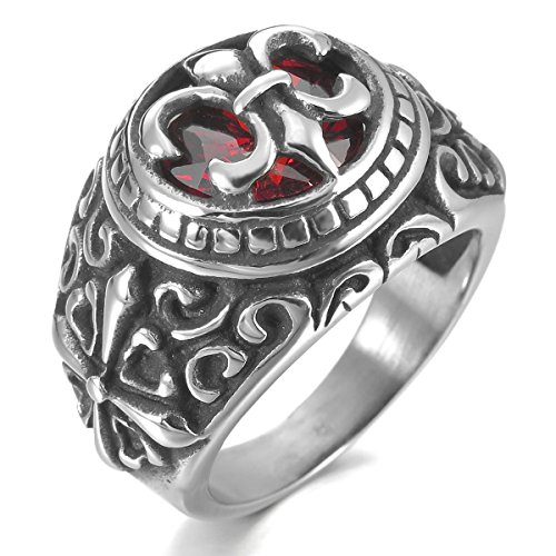 MunkiMix Acciaio Inossidabile Anello Anelli Zirconia Cubica Zircone Tono Argento Nero Rosso Celtico Celtic Medieval Croce Fleur de Lis Cavalieri Templari Ovale Sigillo Uomo