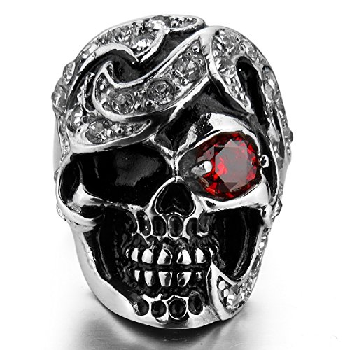 MunkiMix Acciaio Inossidabile Anello Anelli Zirconia Cubica Zircone Tono Argento Nero Rosso Cranio Teschio Dimensioni 22 Uomo