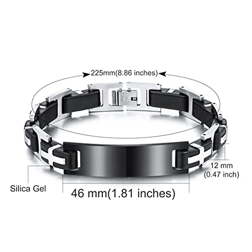 ️ DETTAGLI TAGLIA - La lunghezza totale del bracciale è di circa 225 mm (8,9 pollici), la lunghezza della targhetta identificativa in acciaio inossidabile è di circa 46 mm (1,8 pollici).