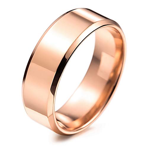 MunkiMix Uomo Nozze Anelli Resistente all'Acqua per Donne Ragazzi Ragazze Acciaio Inossidabile Lucidato Uomini Nozze Bande Promettere Anello per Uomo 8mm Rosa Oro Colore (Size 12)
