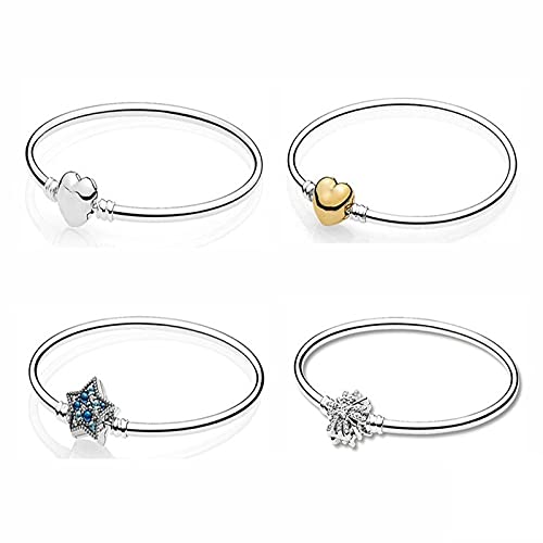 MUNMASI 925 Argento Fit Original Pandora Charms Bead Firework Stella a Cinque Punte Love Heart Button Bangle Beads Hanging Accessori Fai da Te(16cm,1)
