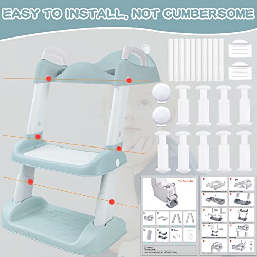 MUOIVG Riduttore WC per Bambini, con Scaletta, con PU Morbida Seduta Imbottita, Pieghevole, Antiscivolo, Adatto per Tazze a V, U Oppure O