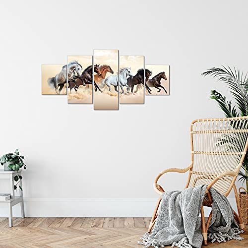 Murali Da Parete Cavalli 5 Pezzi Quadro Tela Non Tessuta Decorazione Soggiorno Animali Brown Beige 032552a