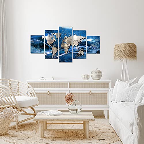 Murali Da Parete Mappa Del Mondo 5 Pezzi Quadro Tela Non Tessuta Decorazione Soggiorno Astratto Moderno Blu 106852a