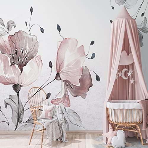 Art Murals Carta da parati in tessuto non tessuto, 200 х 130 cm, acquerello, stampa floreale, fiori per parete, motivo floreale, decorazioni per la casa