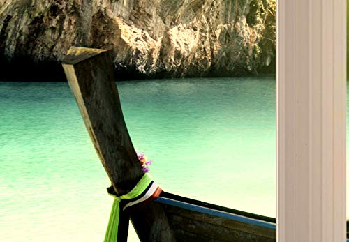 Murando Carta da parati Paradiso 100x70 cm Fotomurali in TNT Murale alla moda Decorazione da Muro XXL Poster Gigante Design Carta per pareti Mare Lago Laguna Paesaggio Barca verde Natura c-C-0456-a-a