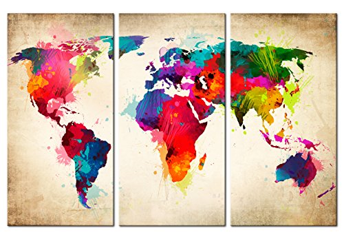 Murando Mappamondo 120x80 cm 3 parti Lavagna Di Sughero & Quadro Su Tela TNT XXL Stampa Bacheca Sughero Quadro Con Tappo Immagini Decorazione da parete Memoboard Mappa Del Mondo k-A-0006-p-f