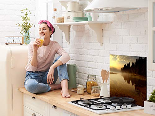 Murando Paraschizzi in Vetro per Cucina Pannello Paraspruzzi per Piano Cottura Pannello per Parete Decorazione Grafica 80x80 cm Paesaggio Natura Acqua c-B-0513-aq-a