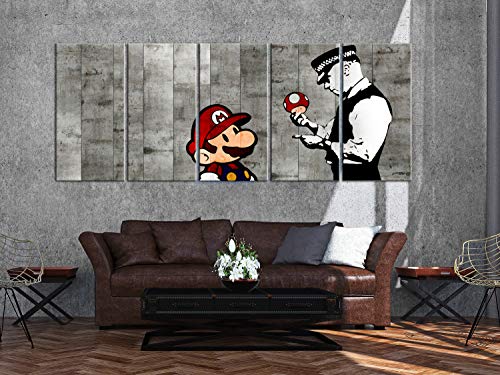 Murando Quadro Banksy Mario 150x60 cm Stampa su tela in TNT XXL Immagini moderni Murale Fotografia Grafica Decorazione da parete Street Art Urban Murale i-C-0111-b-m
