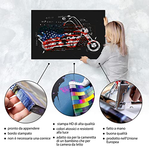 Murando Quadro Harley 120x80 cm 1 pezzo Stampa su tela in TNT XXL Immagini moderni Fotografia Grafica Decorazione da parete Veicolo a motore USA Bandiera Astratto i-C-10015-b-a