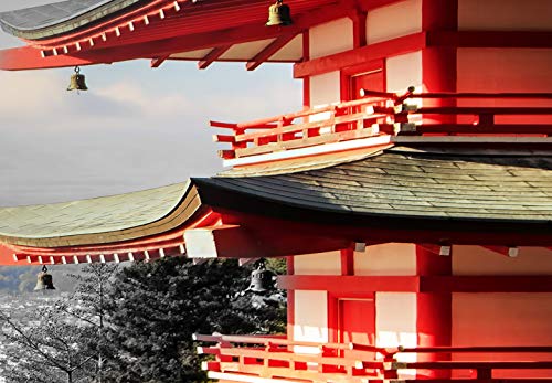 Murando Quadro Japan 100x40 cm 5 pezzi Stampa su tela in TNT XXL Immagini moderni Murale Fotografia Grafica Decorazione da parete Paesaggio nero bianco rosso c-C-0240-b-m