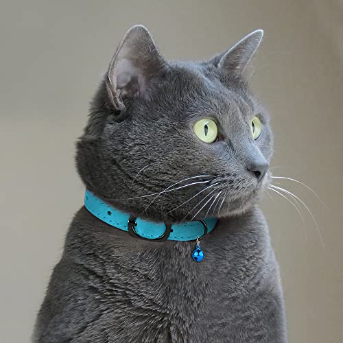 Murom - Collare per gatti in pelle con campana, regolabile, per gattini, colore: nero, marrone, rosa, blu (rosa)