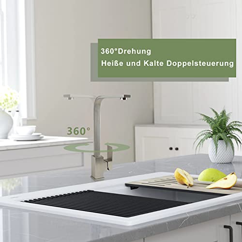 【MATERIALE DI ALTA QUALITÀ】 Il rubinetto da cucina Mursche è realizzato in acciaio inox 304 di alta qualità. Garantisce resistenza alla corrosione, ai graffi e assenza di piombo.