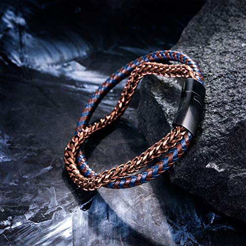 Murtoo Bracciale Uomo Pelle e Pietra Naturali con Chiusura Magnetica Acciaio Inox Braccialetto Pacco Regalo (Marrone e Blu, Bronzo, 21)