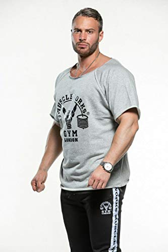 MUSCLE GYM Maglietta da uomo in spugna di cotone felpato per bodybuilding e palestra, colore nero, Mw Grigio, M