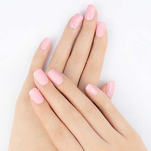 Muse & Co - Unghie finte a tinta unita, colore rosa chiaro "rosa fard, lucide e opache, di media lunghezza, per unghie da donna e ragazza, set da 72 pezzi