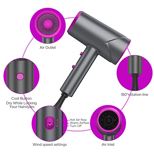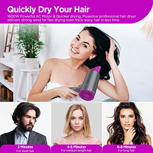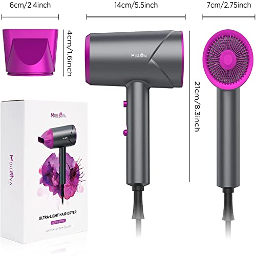 MuseDiva Asciugacapelli ionico Professionale 1800W - Asciugacapelli leggero per Asciugatura Rapida a ioni Negativi con Pulsante di Riscaldamento Raffreddamento per Bambino Incinta