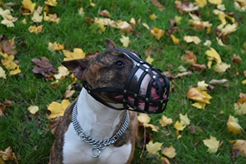 Museruola per cani in pelle per bull terrier inglese e altri muso simile