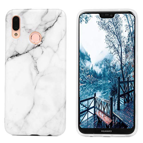 MUSESHOP Cover Huawei P20 Lite Marmo Custodia (processo IMD) Morbido Silicone TPU Flessibile Gomma Opaco Case Protettiva Antiscivolo Satinato Ultra Sottile - Blanco Grisáceo