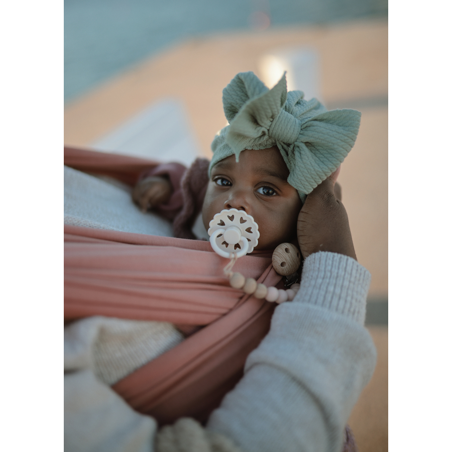 Dettagli del prodotto: Catena per ciuccio Hush con perline in silicone e clip per tenere il ciuccio del vostro beniamino al suo posto. Con occhiello in tessuto per agganciare i ciucci di tutte le marche Morbide perline in silicone alimentare Privo di BPA, PVC e ftalati Inodore Design Prodotto in Svezia Design Eva Blush Materiale e dimensioni: Perline in silicone alimentare. Cordoncino in nylon Clip in Metal l Senza BPA Istruzioni per la conservazione e la cura: Non adatto alla lavastoviglie o alla sterilizzazione Per la pulizia, passare un panno umido evitando la clip. Avvertenze e istruzioni di sicurezza: Attenzione: per la sicurezza del bambino. Controllare il portaciuccio prima di ogni utilizzo. Gettarlo immediatamente al primo segno di danno o difetto! Non allungare mai il portaciuccio! Non agganciare mai il portaciuccio a corde, nastri, cinghie o parti libere degli indumenti. Il bambino potrebbe strangolarsi con esso. Attaccate il portaciuccio solo agli indumenti del vostro bambino. Si raccomanda di non utilizzare il portaciuccio nel box, nel letto o nella culla. Sostituirlo immediatamente ai primi segni di usura o difetti. Non utilizzare senza sorveglianza Questo portaciuccio è conforme alla norma DIN EN 12586 (standard per i portaciucci). La consegna include: 1 x catena portaciuccio