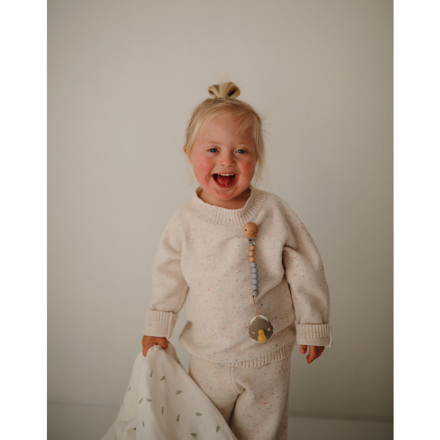 Dettagli del prodotto: Catena per ciuccio Hush con perline in silicone e clip per tenere il ciuccio del vostro beniamino al suo posto. Con occhiello in tessuto per agganciare i ciucci di tutte le marche Morbide perline in silicone alimentare Privo di BPA, PVC e ftalati Inodore Design Prodotto in Svezia Design: Eva Cloud Materiale e dimensioni: Perline in silicone alimentare. Cordoncino in nylon Clip in Metal l Senza BPA Istruzioni per la conservazione e la cura: Non adatto alla lavastoviglie o alla sterilizzazione Per la pulizia, passare un panno umido evitando la clip. Avvertenze e istruzioni di sicurezza: Attenzione: per la sicurezza del bambino. Controllare il portaciuccio prima di ogni utilizzo. Gettarlo immediatamente al primo segno di danno o difetto! Non allungare mai il portaciuccio! Non agganciare mai il portaciuccio a corde, nastri, cinghie o parti libere degli indumenti. Il bambino potrebbe strangolarsi con esso. Attaccate il portaciuccio solo agli indumenti del vostro bambino. Si raccomanda di non utilizzare il portaciuccio nel box, nel letto o nella culla. Sostituirlo immediatamente ai primi segni di usura o difetti. Non utilizzare senza sorveglianza Questo portaciuccio è conforme alla norma DIN EN 12586 (standard per i portaciucci). La consegna include: 1 x catena portaciuccio