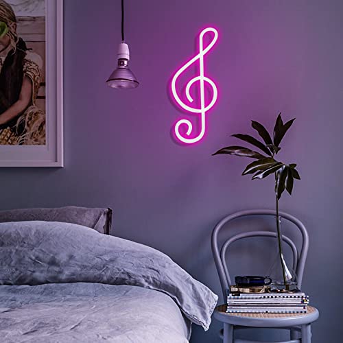 Music Note Neon Light Led Neon Sign Luce al neon rosa Lampada da parete al neon a batteria/USB per la stanza delle ragazze Insegna musicale con luci artistiche per feste da concerto in bar (rosa)