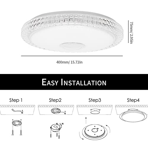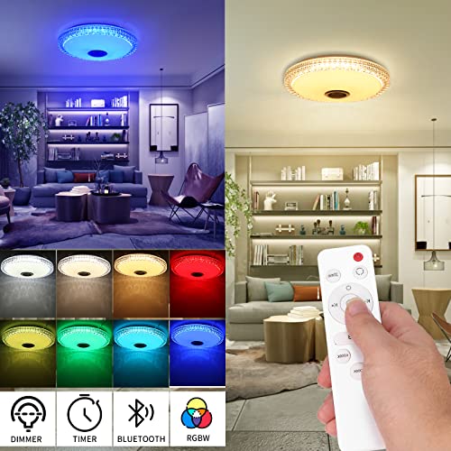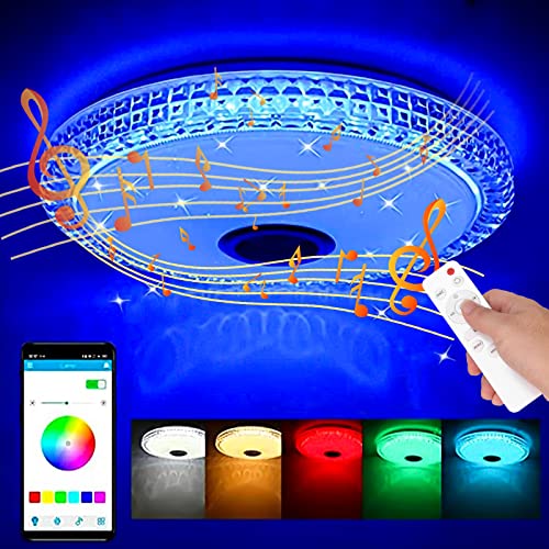 36W Music LED Plafonnier Imitant une Bordure De Cristal avec Haut-Parleur Bluetooth Wifi et Télécommande, Lumière Changeante de Couleur pour Chambre, Cuisine, Chambre dEnfants, Salon