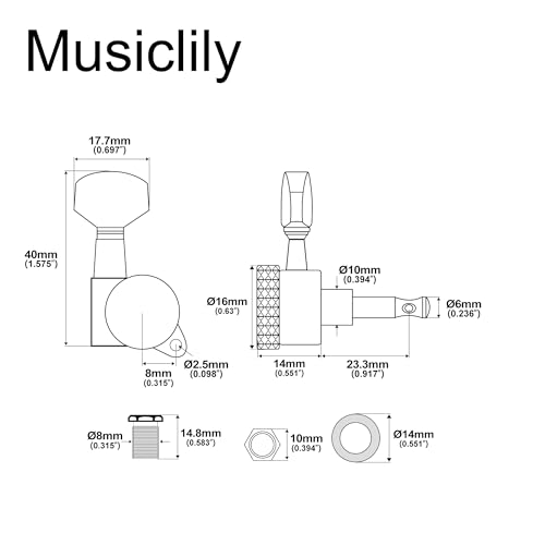 Musiclily 6 in Linea Locking Tuners Meccaniche Autobloccanti per Fender Chitarra Elettrica Straocaster Telecaster, Nero