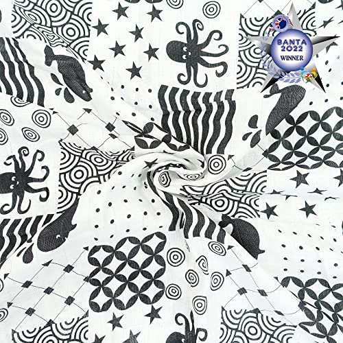 MuslinZ Mussola sensoriale quadrati in bianco e nero per stimolazione visiva e gioco sensoriale misto bambù / cotone biologico (70 x 70 cm)