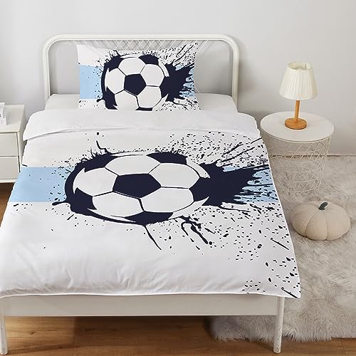MUSOLEI Calcio Copripiumino singolo bambino Set di Biancheria da letto per Bambini Set copripiumino singolo ragazzo 2 Pezzi in 100% Microfibra Copripiumino 135 x 200 cm e 1 Federa 50 x 80 cm