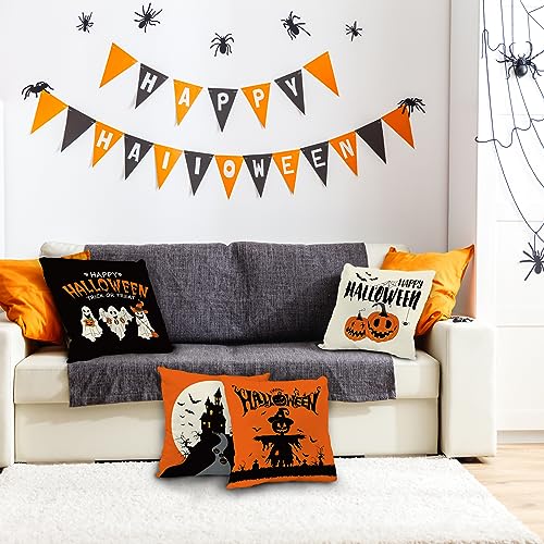 MUSOLEI Copricuscini di Halloween 4 Pezzi Federa per cuscino Decorazioni casa Fodere per cuscino Velluto 45 x 45 cm Regalo Happy Halloween Zucca Accessori Halloween Gadget