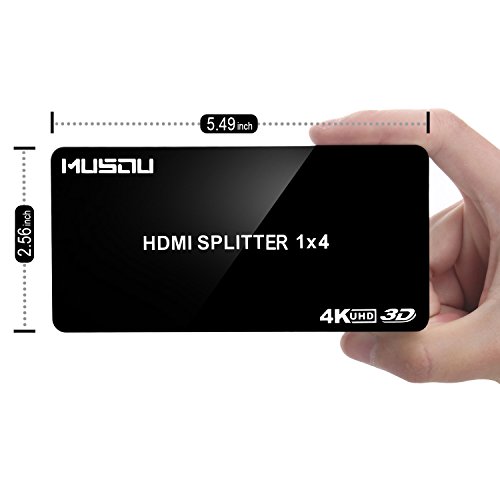 Musou Splitter HDMI 1x4 Splitter Switch | supporta segnali UHD, 3D, 4K, 4K*2K segnale da 1 dispositivo HDMI a quattro TV/Monitor/Proiettori in uscita simultaneamente | HDMI 4K Splitter risoluzione fino a 2160p