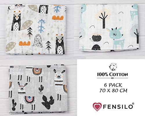 Mussole - Mussole Neonato - Mussole in Cotone - MADE IN EU - Pacco da 6, 70x80cm- Telo Mussola - Grigio - Animali - Mussole Bimbo e Bimba - Mussola certificazione OEKO-TEX STANDARD 100