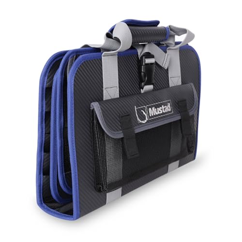 Mustad Jig Bag, telone impermeabile da 500 denari, chiusura a scatto, grigio/blu, grande capacità di 35 dime